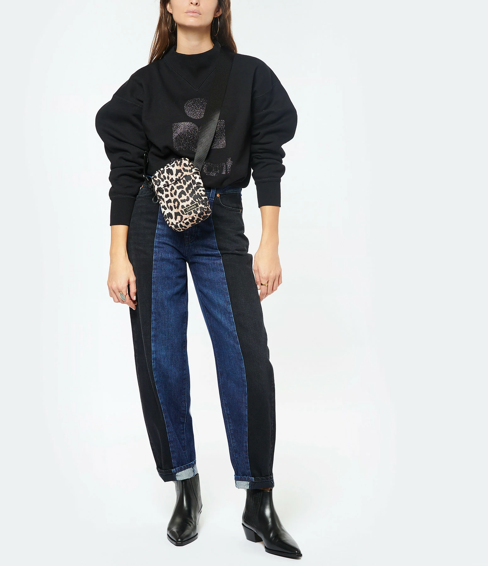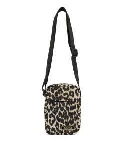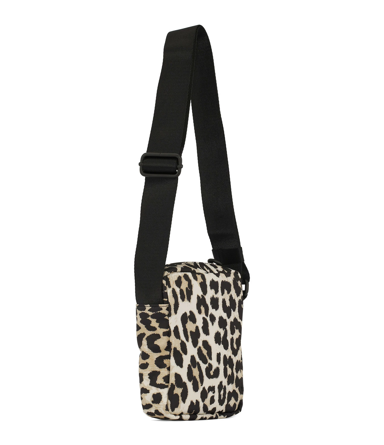 Petite sacoche en tissu technique recyclé à imprimé léopard. Une bandoulière ajustable. Fermeture zippée. Patch avec logo GANNI sur le devant. Une poche zippée sur le devant. Intérieur doublé organisée en un compartiment.
