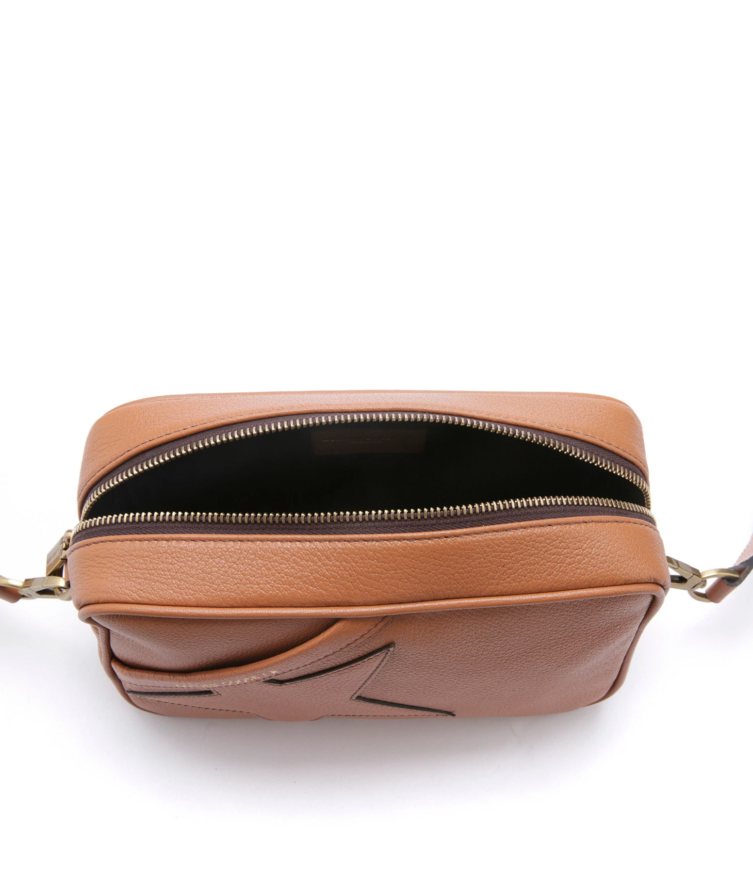 Sac bandoulière en cuir marron. Empiècement étoile en cuir marron. Une poche plaquée à l’avant. Bandoulière amovible par mousquetons réglable sur six longueurs. Intérieur doublé en tissu avec une poche plaquée.