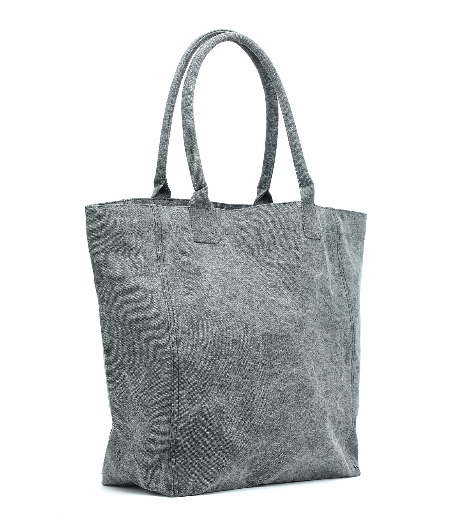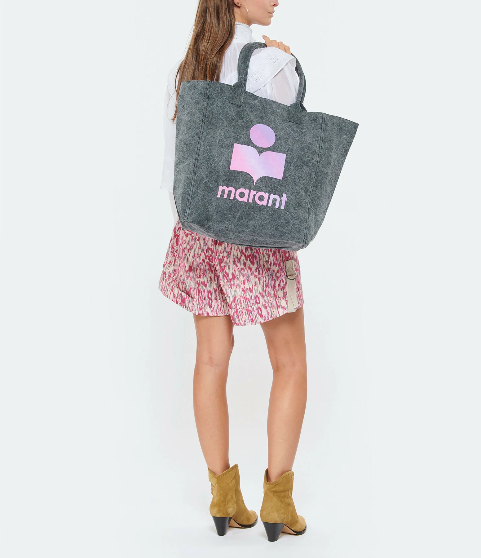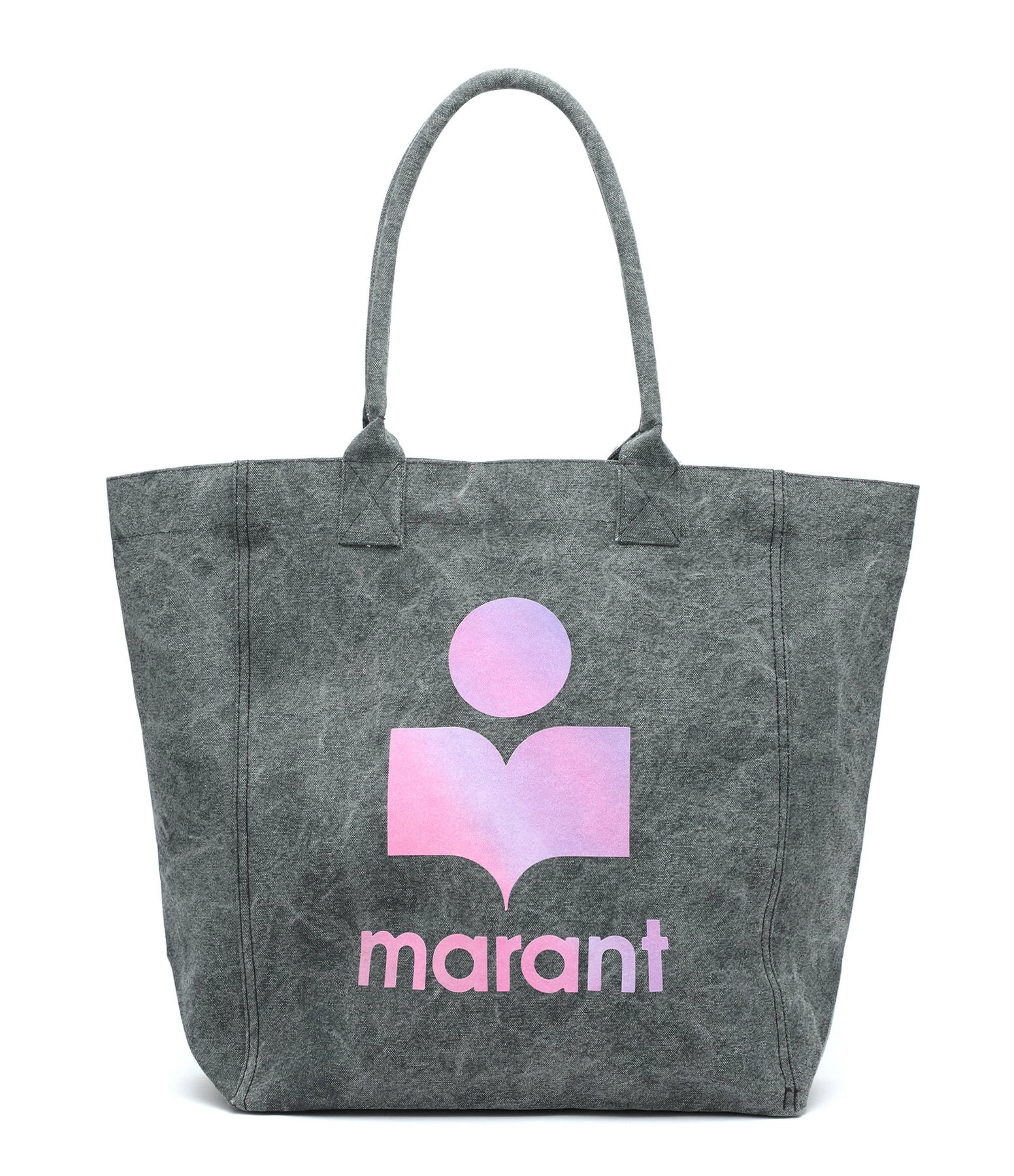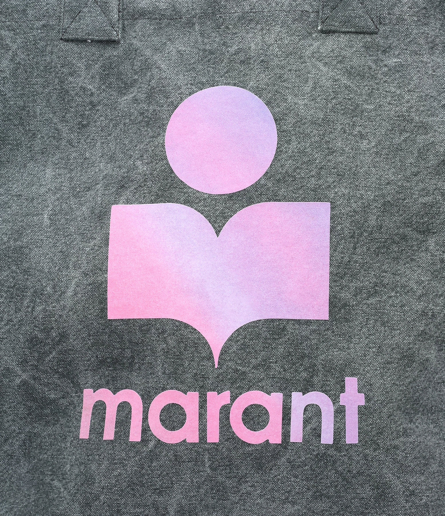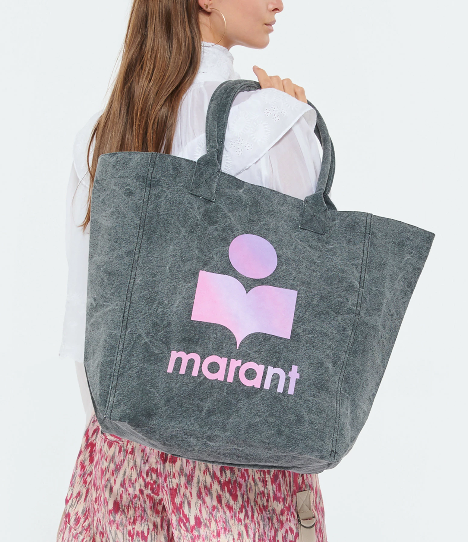 Sac en coton froissé gris bleu avec logo “Isabel Marant” tie & die rose. Grandes anses.