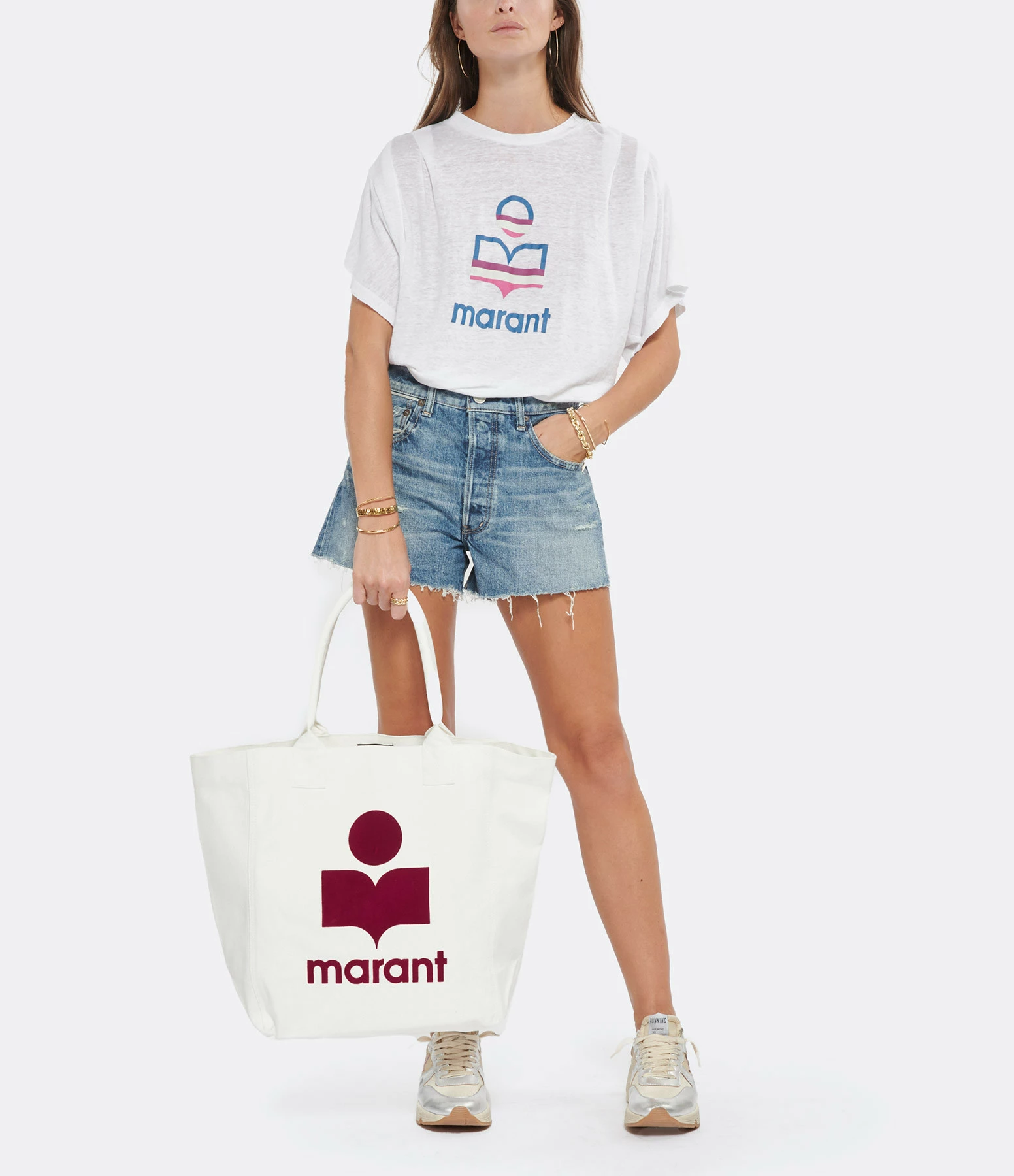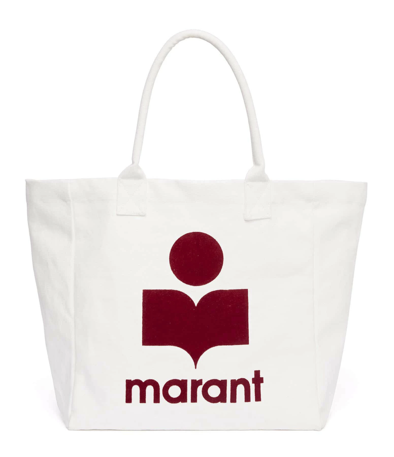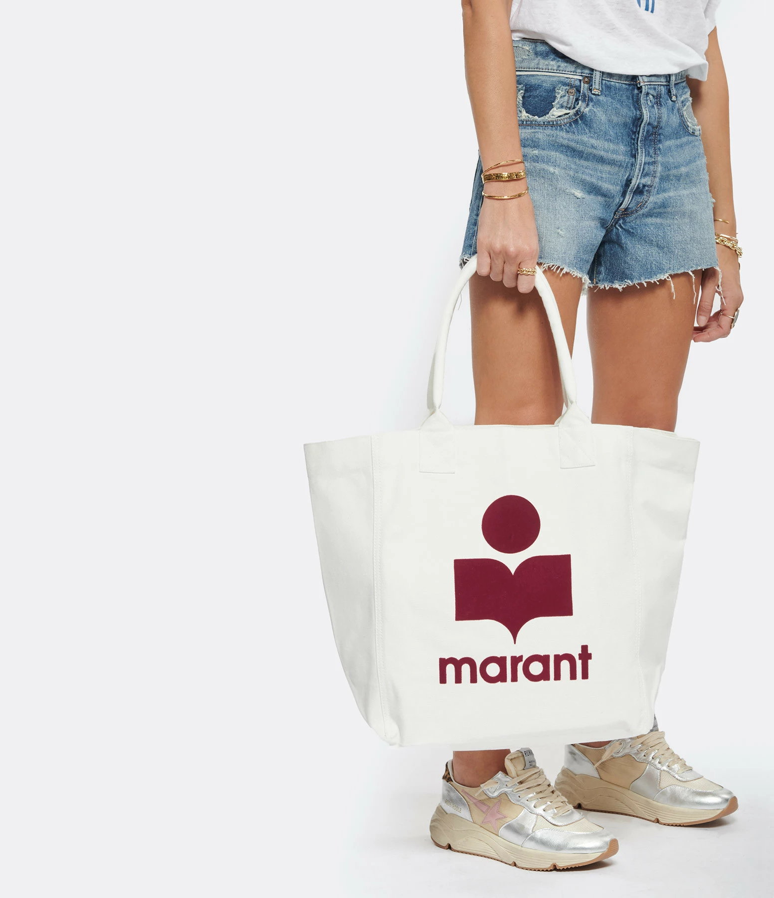 Sac en coton écru. Logo “Isabel Marant” en velours bordeaux floqué sur l’avant. Grandes anses.