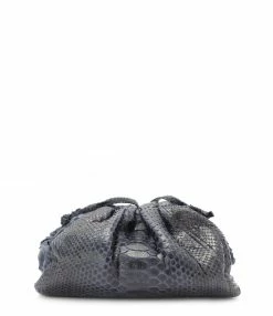Sac bandoulière souple en python bleu. Une poche plaquée à l’intérieur. Fermeture par aimant.
