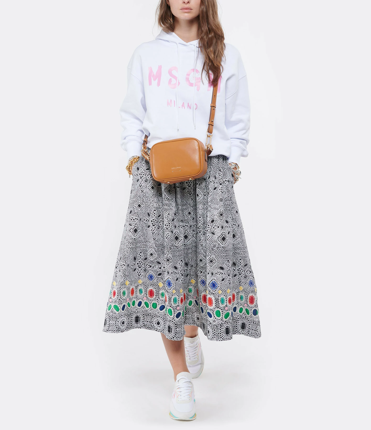 Sac en cuir lisse marron. Fermeture par un zip sur le dessus. Une bandoulière réglable et une anse amovible. Deux passants au dos pour le porter à la taille. Intérieur doublé en coton composé d’une poche plaquée. Base plate avec pieds métalliques.