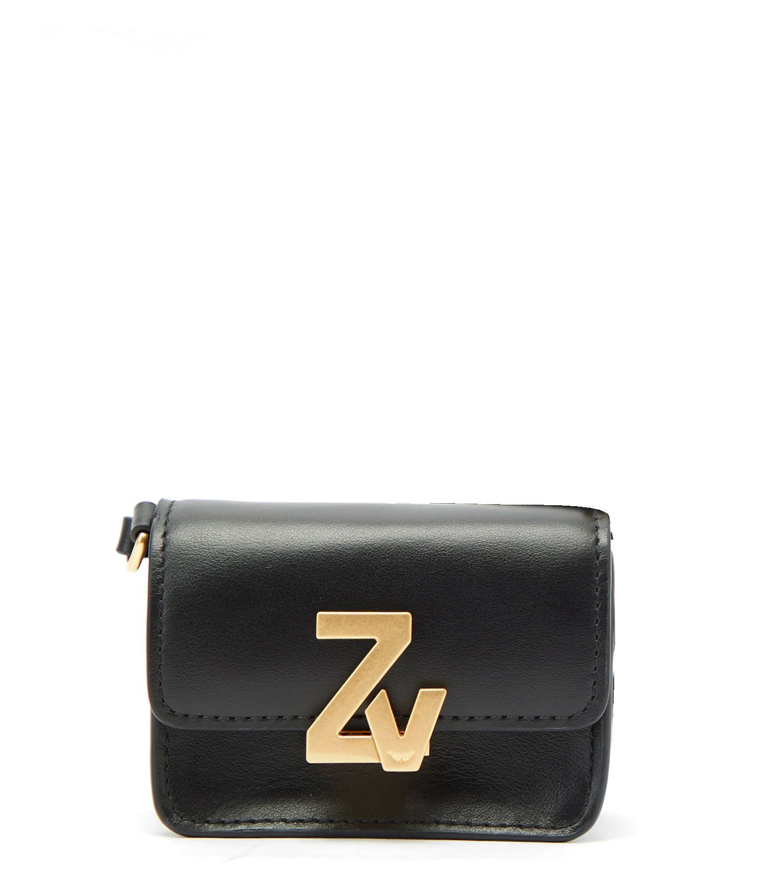 Mini sac en cuir lisse noir. Fermoir ZV doré. Poche plaquée au dos. Fine bandoulière non réglable. Intérieur doublé en coton.